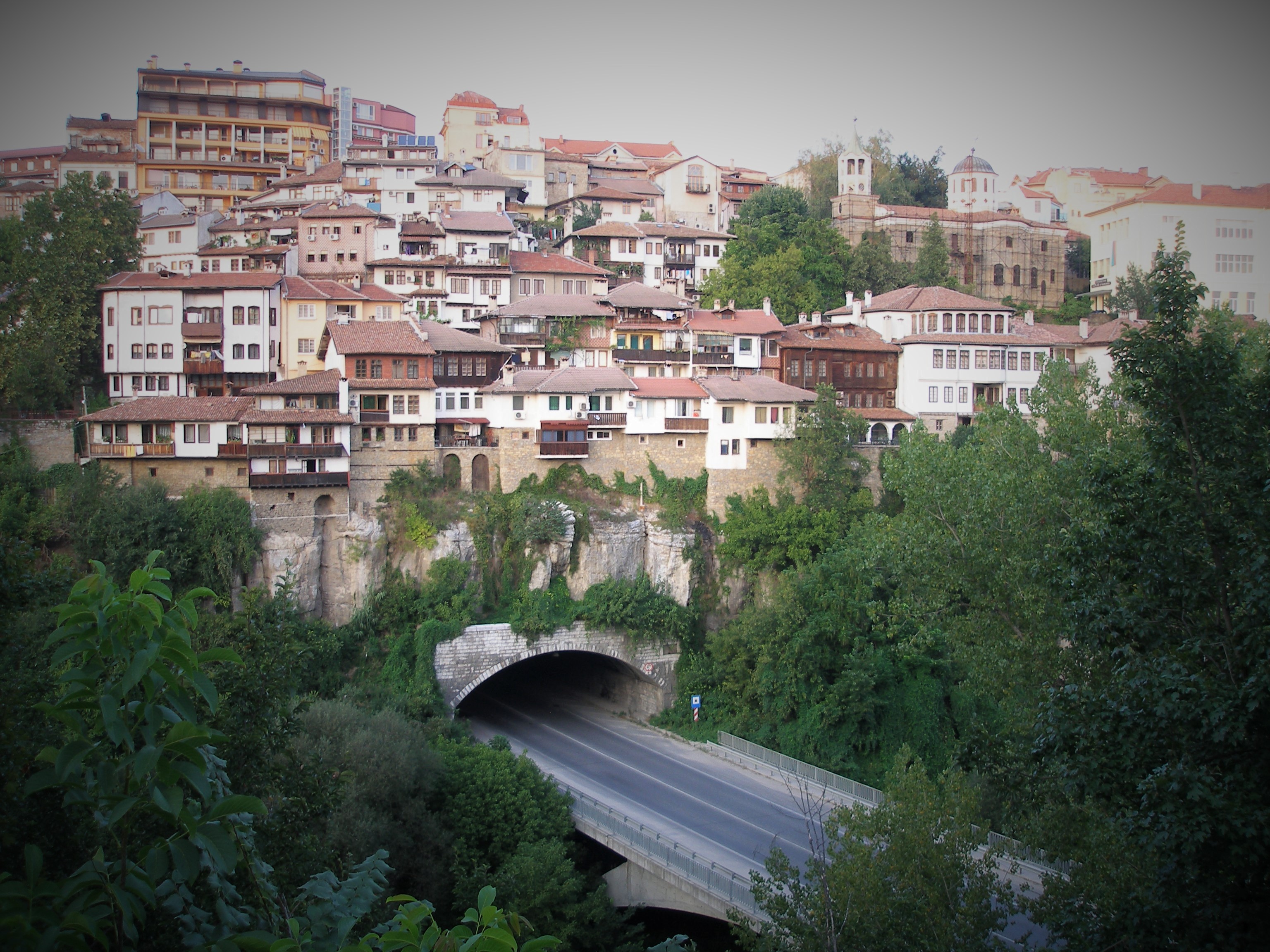 The house archcitecture in Veliko Tarnovo III, houses over the traffic bridge and tunnel